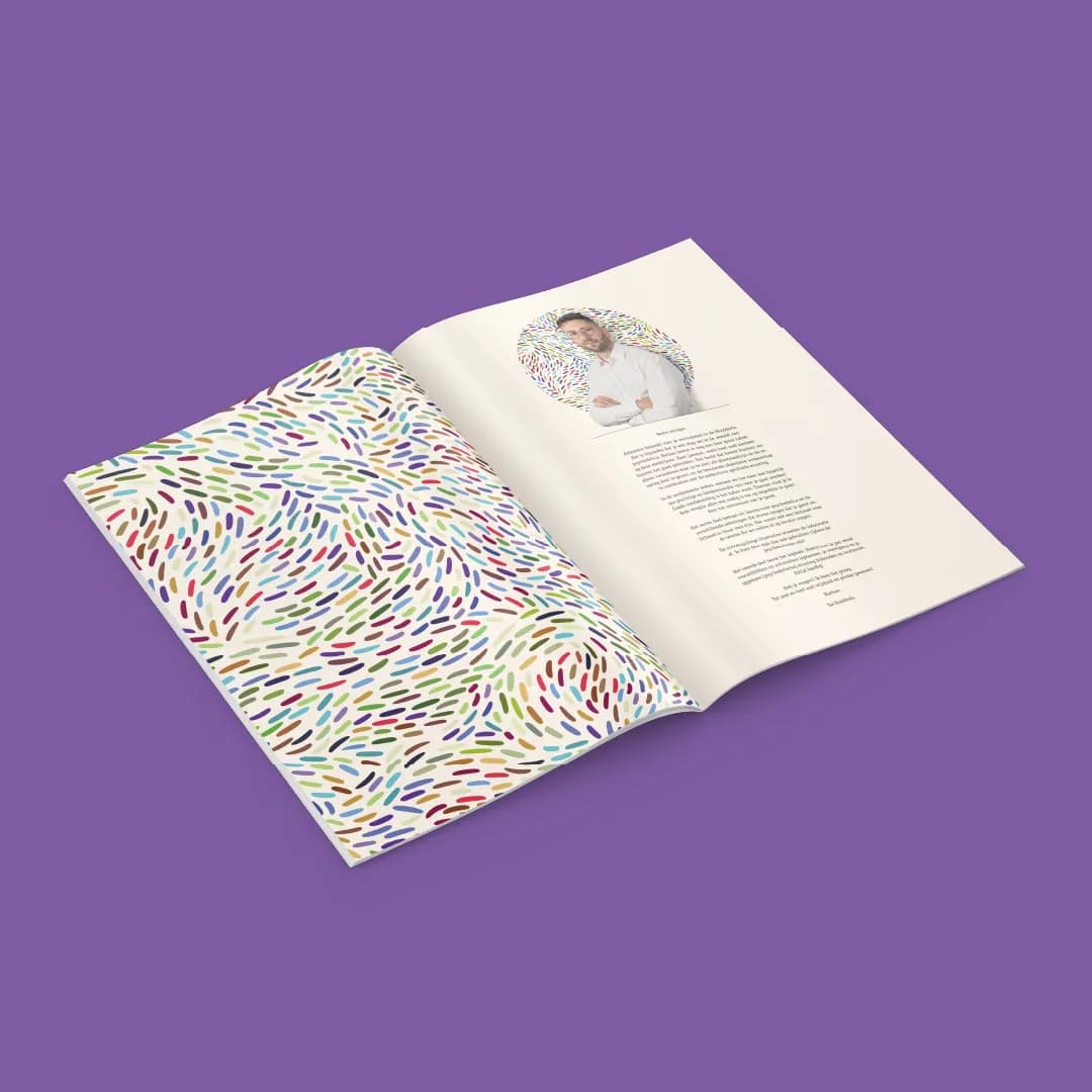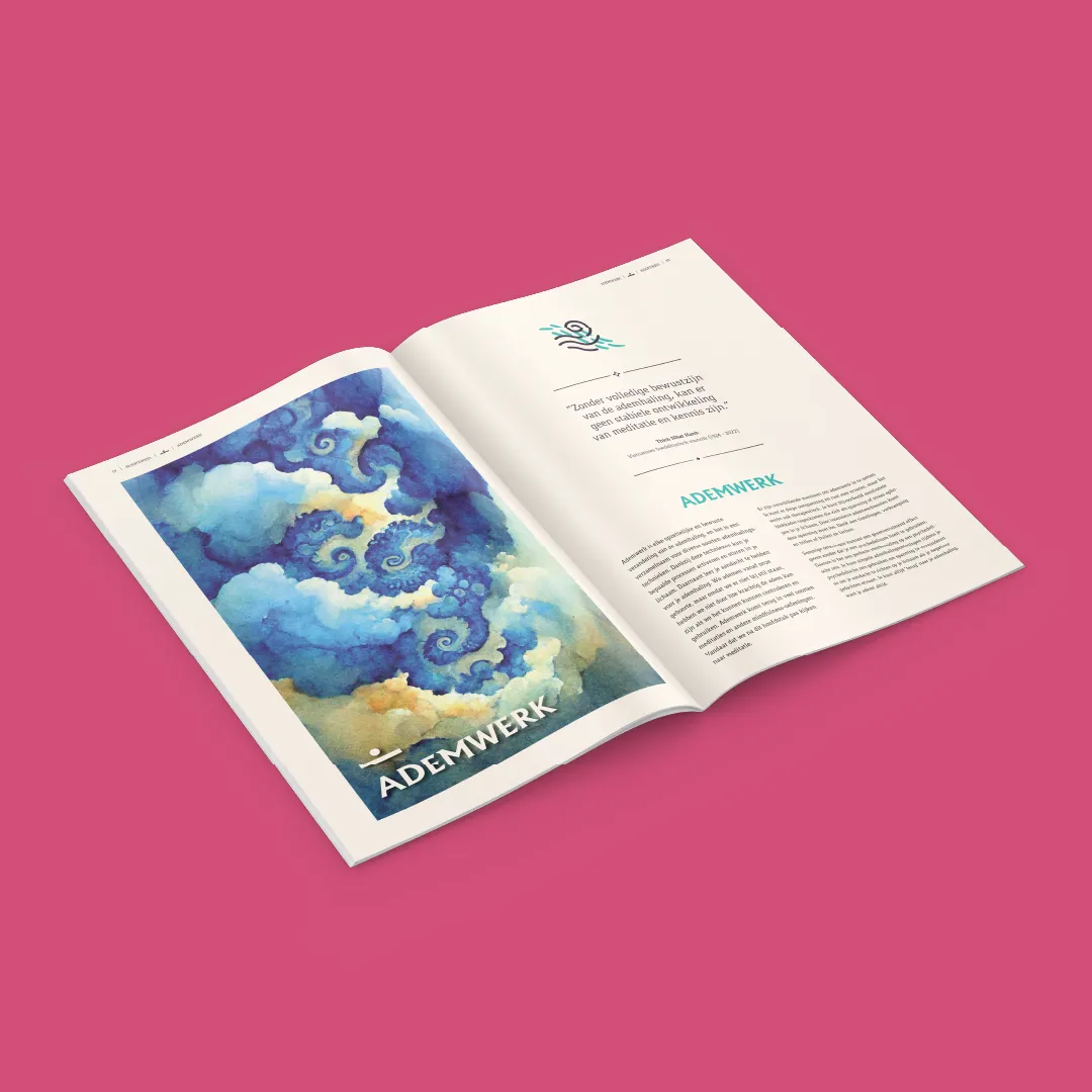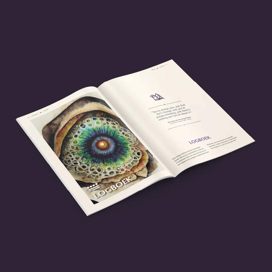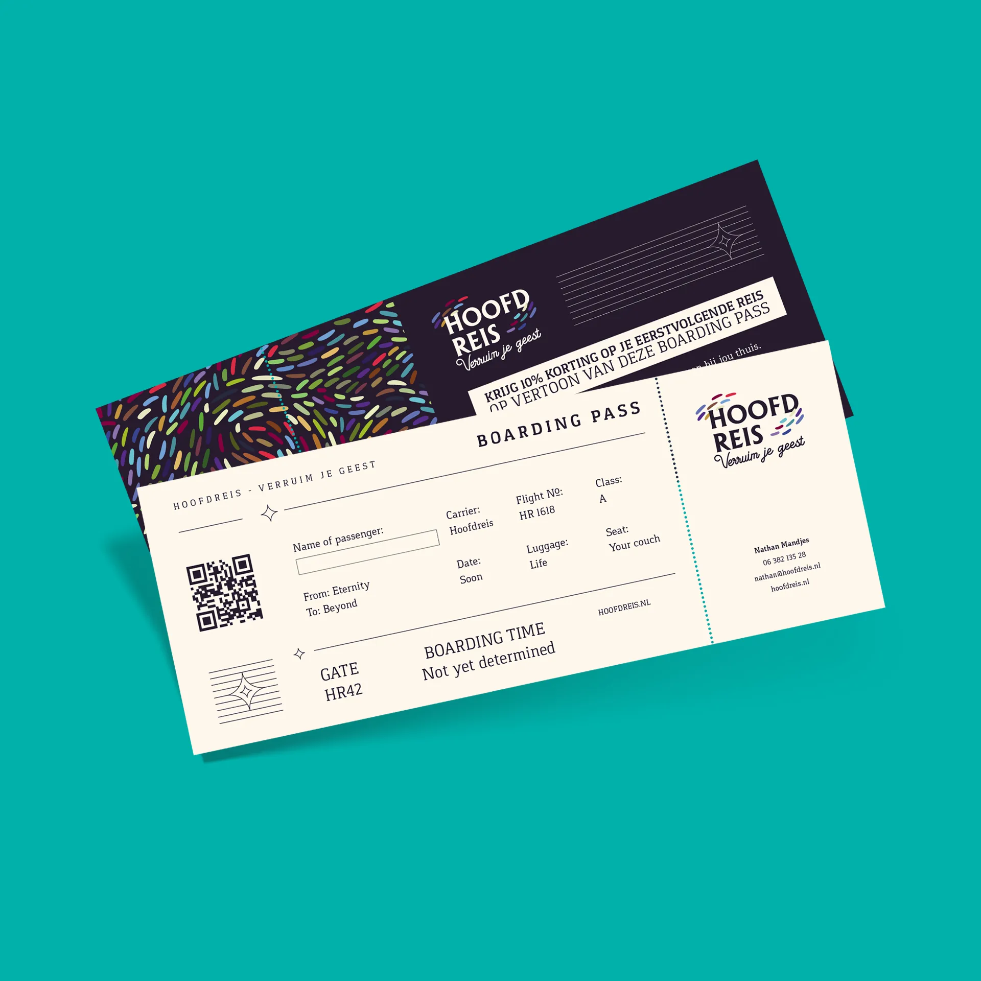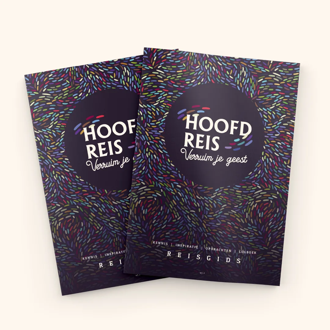 Als je op een hoofdreis bent is alles intens, door de diversiteit om je heen. Het kan soms wat blurry en veel zijn, maar het geen waar de focus op ligt is de hoofdreis. Daarom heb ik een huisstijl ontwikkelt die toch een beetje dat blurryness heeft, maar er wel een duidelijk focuspunt in zit. Er gebeurt van alles om je heen, zoals de bewegende strepen doen vermoeden. Ze zitten links, rechts, boven, onder, achter en van voren. Alles draait om de hoofdreis.