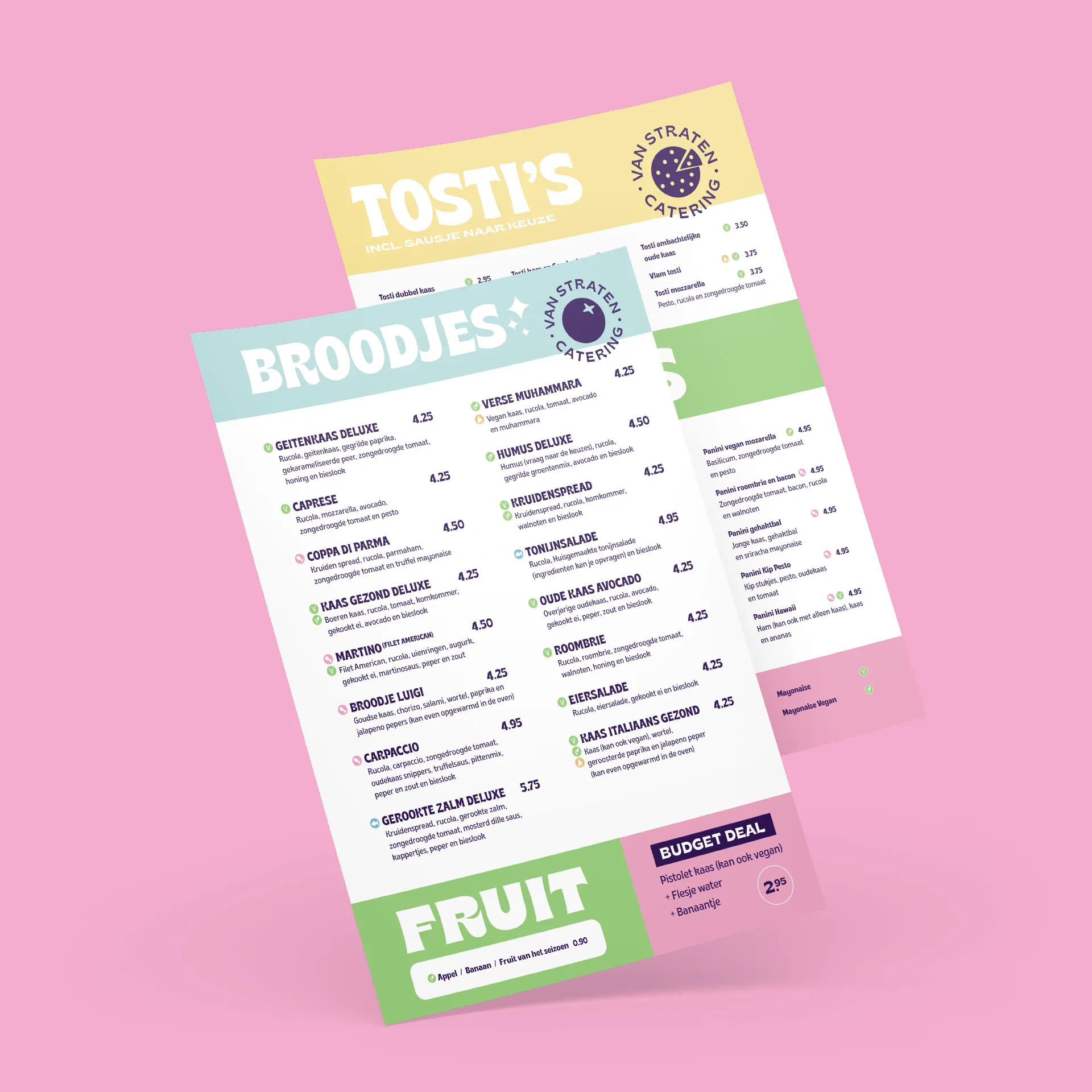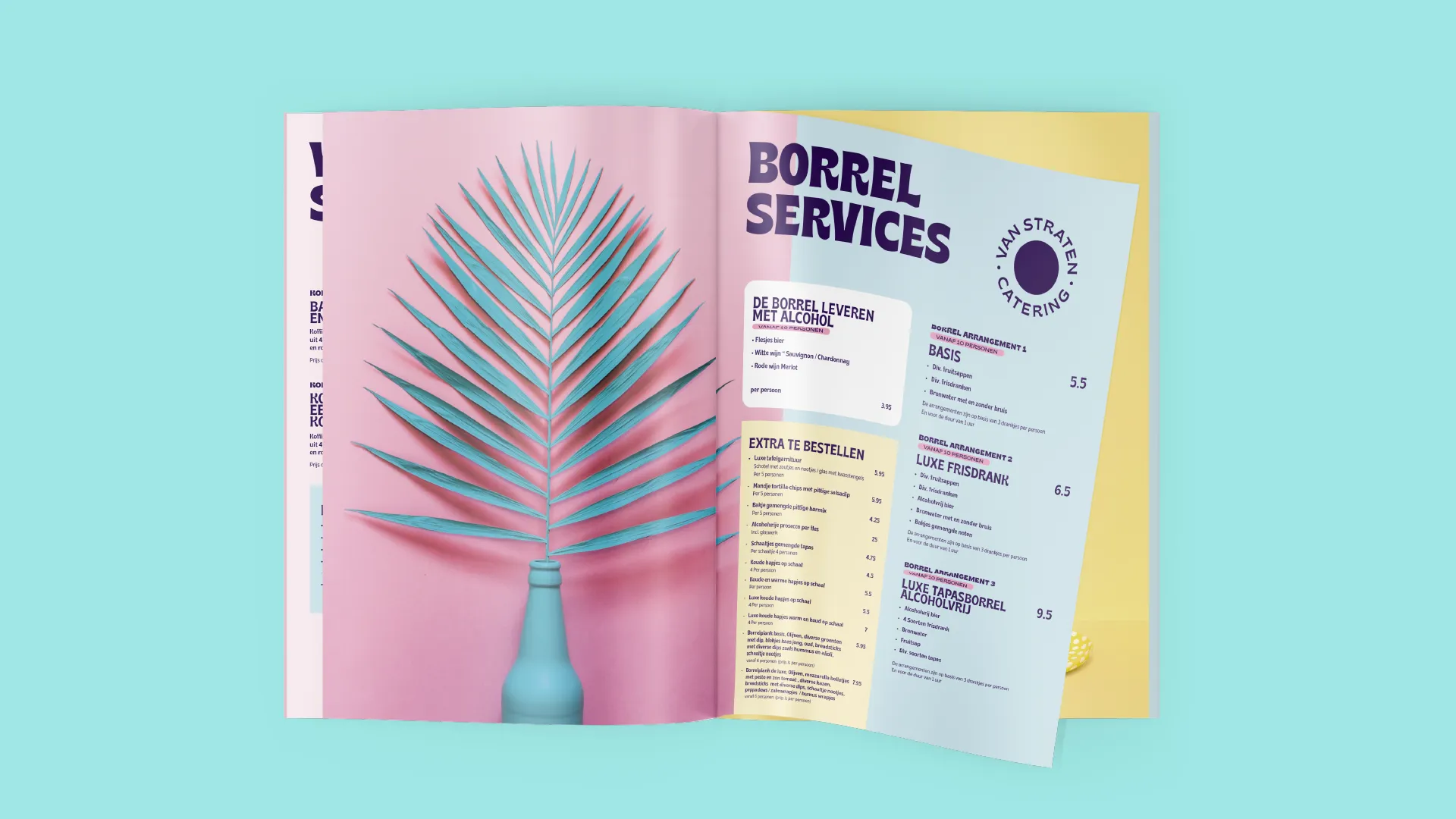 VS Catering was mijn eerste klant, toen ik nog op de HKU zat. Er is door de jaren heen veel veranderd, uiteindelijk heb ik de gehele branding opnieuw mogen vormgeven. En is er een logo uitgekomen die overeenkomt met de veelzijdigheid van VS Catering. Met een logo, die veranderd op het moment bij het verschillende eten en dranken. De pastel kleuren met de patronen en het beeldmateriaal, spiegelen met de verschillende genders en afkomsten, dat eigenheid die samenhorenheid zich binnen de HKU verbind.