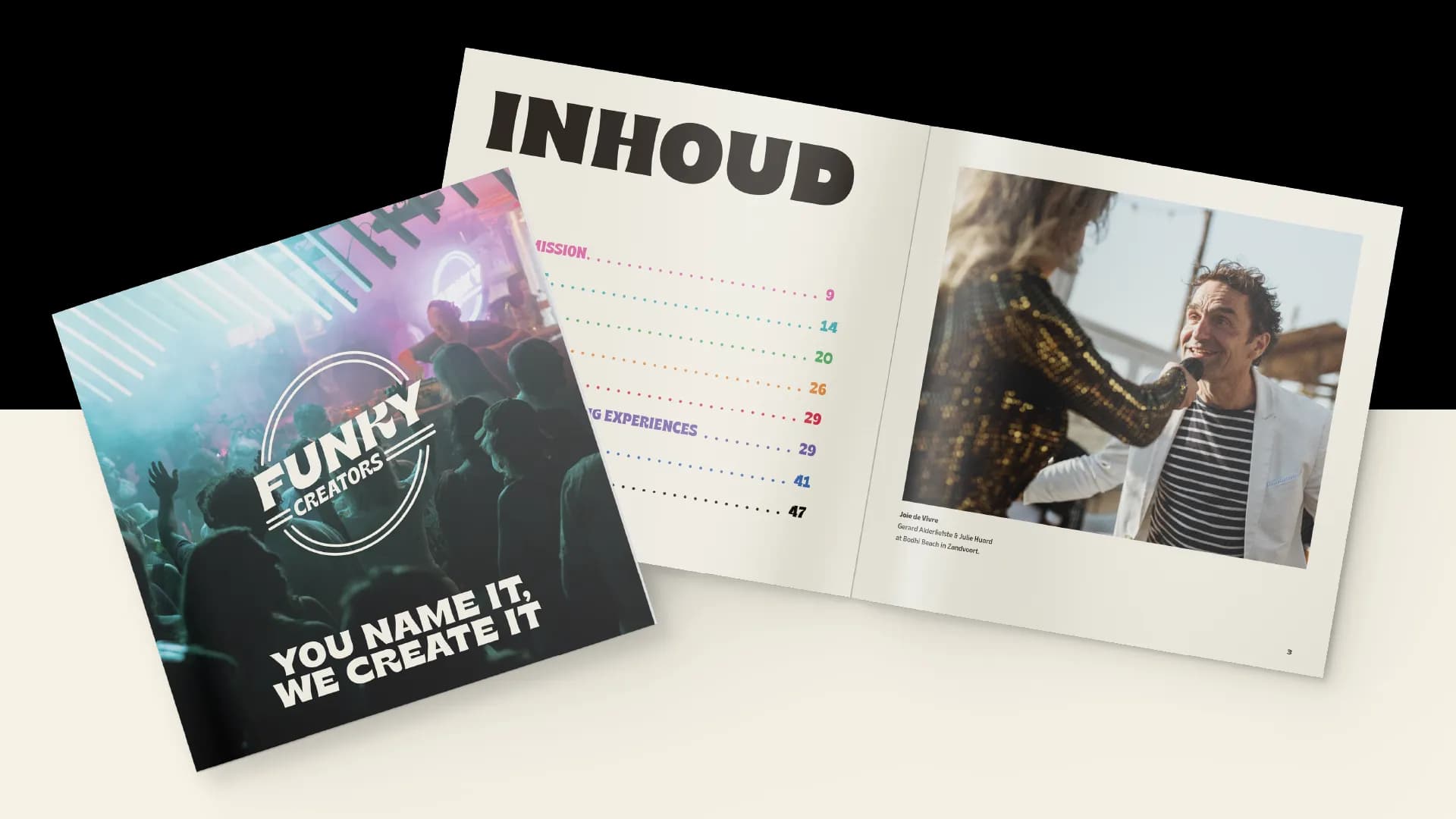 Voor Funky Vinyl heb ik een unieke visuele identiteit gecreëerd die de speelse geest en de veelzijdigheid van hun evenementen weerspiegelt. Dit bedrijf organiseert niet alleen eigen feesten, maar biedt ook maatwerk evenementen voor anderen aan. Mijn ontwerp incorporeert de structuren van lavalampen met een explosie van levendige kleuren, waardoor het geheel opvalt en een vrolijke sfeer uitstraalt. Deze uitstraling vangt de gezelligheid en warmte die Funky Vinyl wil uitstralen tijdens elk evenement.