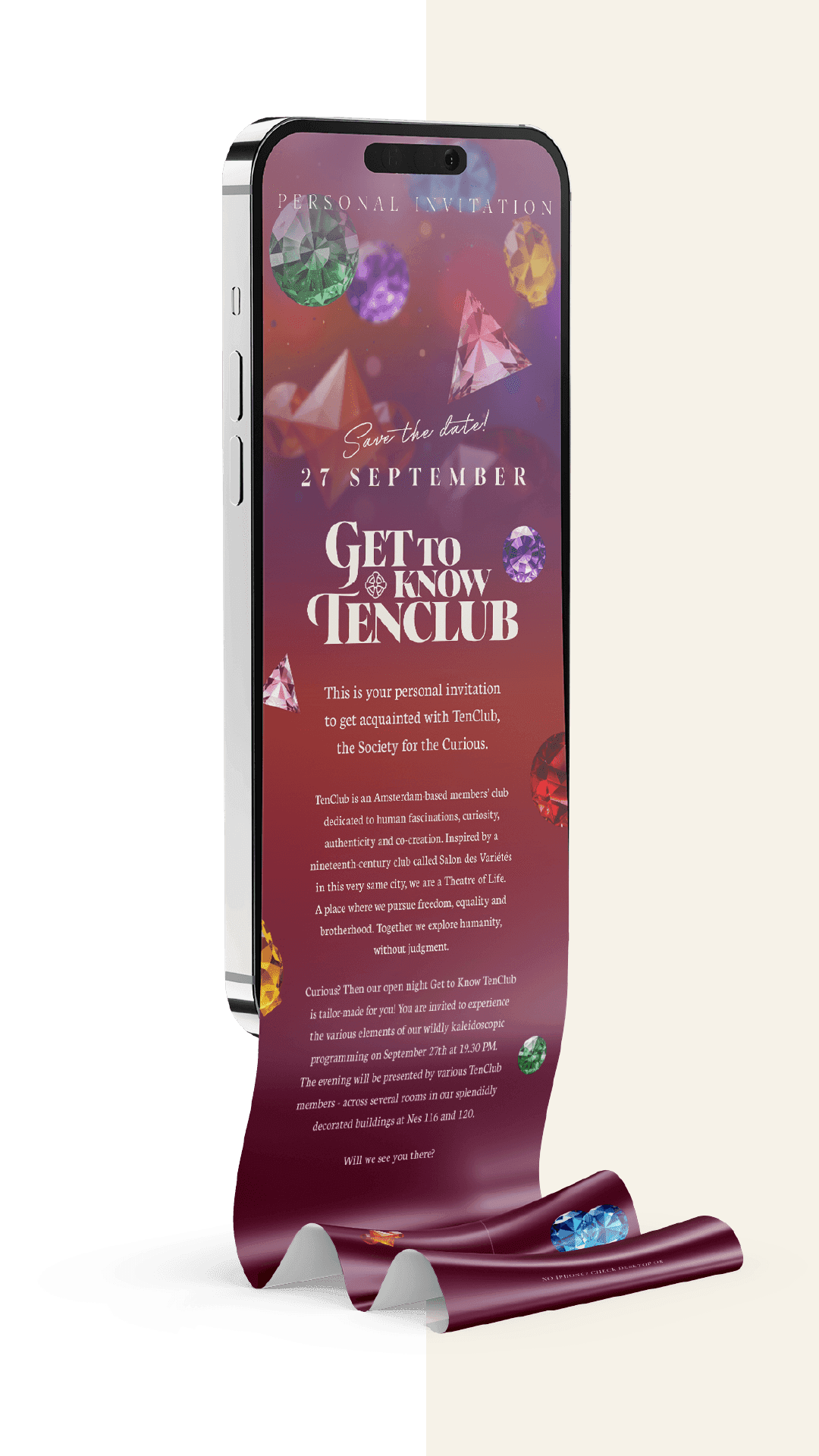 In eerste instantie waren het alleen iconen, maar doormiddel van AI, heb ik deze iconen naar diamanten omgezet. Daardoor krijgt het een luxe en kleurrijke uitstraling, iets wat je ook meteen opmerkt als je de Tenclub binnen loopt.
